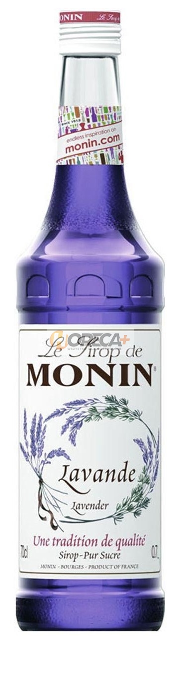 Lawenda firmy MONIN cechuje się pięknym kolorem i charakterystycznym aromatem przypominającym barwy i zapachy Prowansji. Aromat ten stanowi część bukietów aromatów kwiatowych obejmujących także jaśmin, różę i fiołka. Wszystkie aromaty kwiatowe firmy MONIN są idealne do wzbogacania zapachem kwiatów różnorodnych napojów i potraw.